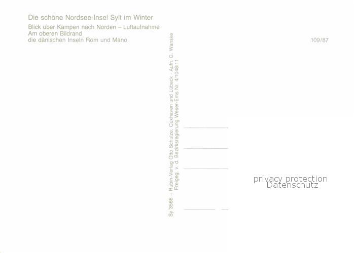 72667218 SYLT Insel Schleswig-Holstein Fliegeraufnahme mit Kampen mit Insel Roem und Manoe postalisch nicht gelaufen Erhaltung siehe scans [LiesaD40] KatCode: 11110001054133