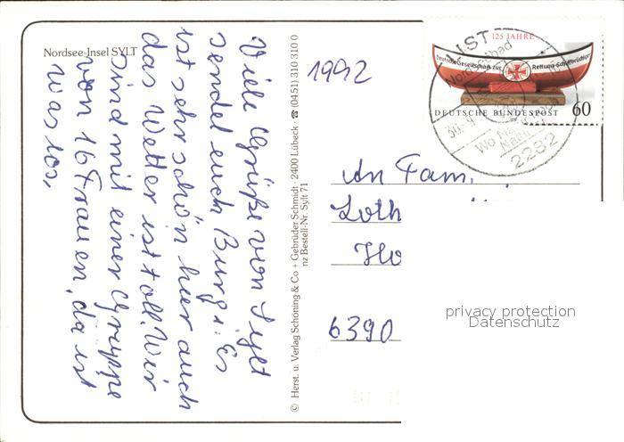 72461161 alte Postkarte SYLT Insel Schleswig-Holstein Fliegeraufnahme Strand Duenen Reetdachhaus postalisch gelaufen Erhaltung siehe scans KatCode: 11110001054133