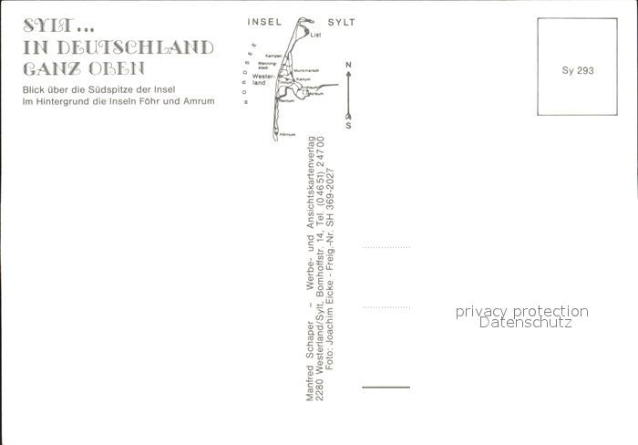 72257981 SYLT Insel Schleswig-Holstein Fliegeraufnahme Suedspitze mit Foehr und Amrum postalisch nicht gelaufen Erhaltung siehe scans KatCode: 11110001054133