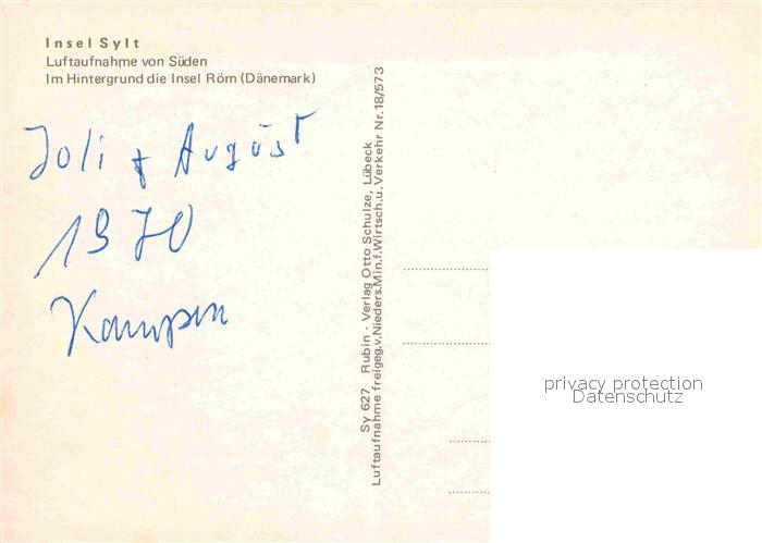 72856842 SYLT Insel Schleswig-Holstein Fliegeraufnahme von Sueden mit Insel Roem postalisch nicht gelaufen Erhaltung siehe scans [AndreD76] KatCode: 11110001054133