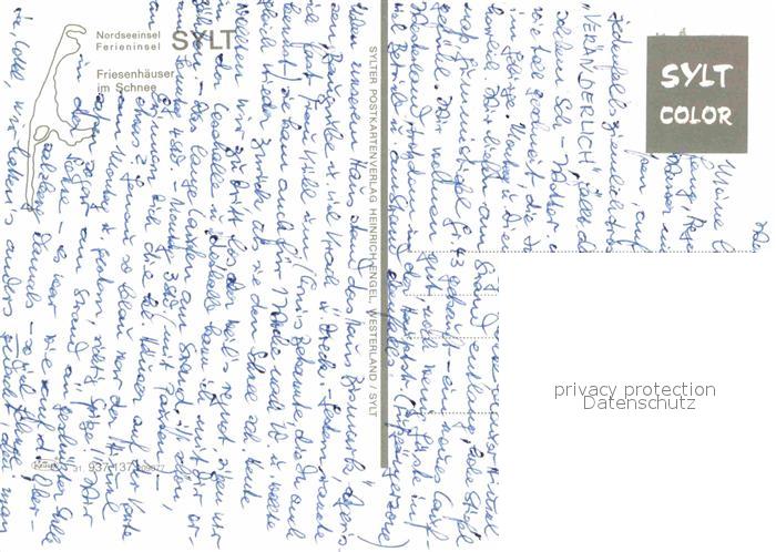 72631250 SYLT Insel Schleswig-Holstein Friesenhaeuser im Winter postalisch nicht gelaufen Erhaltung siehe scans [LiesaD40] KatCode: 11110001054133