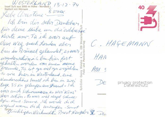 72819629 SYLT Insel Schleswig-Holstein Hoernum Fliegeraufnahme postalisch nicht gelaufen Erhaltung siehe scans [NatalD47] KatCode: 11110001054133