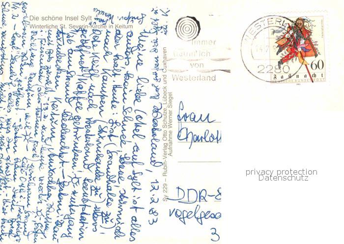 72631418 alte Postkarte SYLT Insel Schleswig-Holstein Keitum Severinkirche im Winter postalisch gelaufen Erhaltung siehe scans [LiesaD40] KatCode: 11110001054133