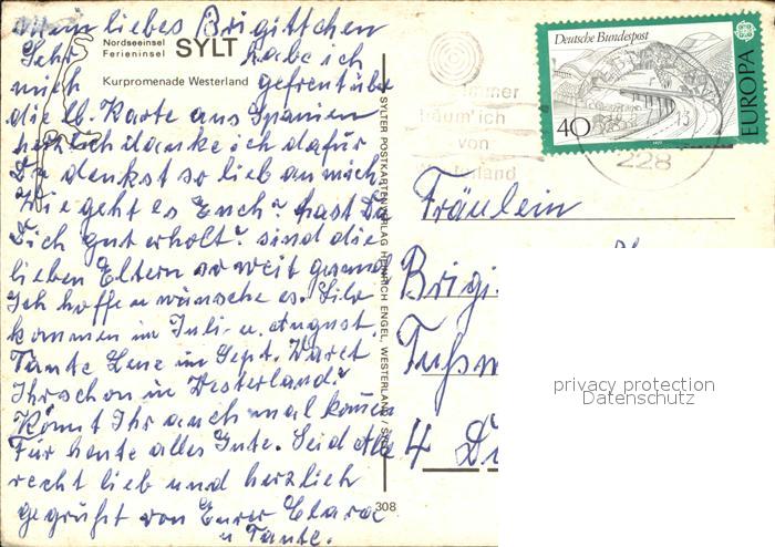72526449 alte Postkarte SYLT Insel Schleswig-Holstein Kurpromenade Westerland postalisch gelaufen Erhaltung siehe scans KatCode: 11110001054133