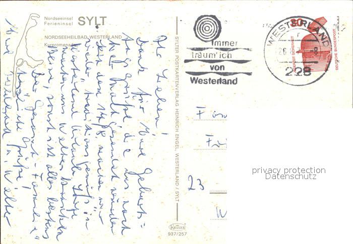72289816 alte Postkarte SYLT Insel Schleswig-Holstein Kurpromenade postalisch gelaufen Erhaltung siehe scans KatCode: 11110001054133