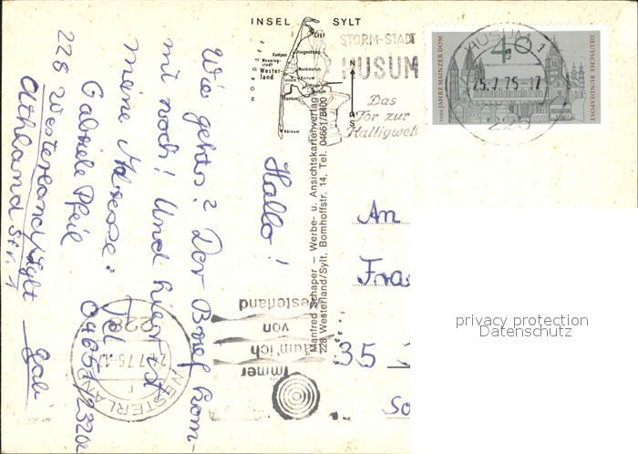 72261301 alte Postkarte SYLT Insel Schleswig-Holstein Landkarte der Insel Sylt postalisch gelaufen Erhaltung siehe scans KatCode: 11110001054133