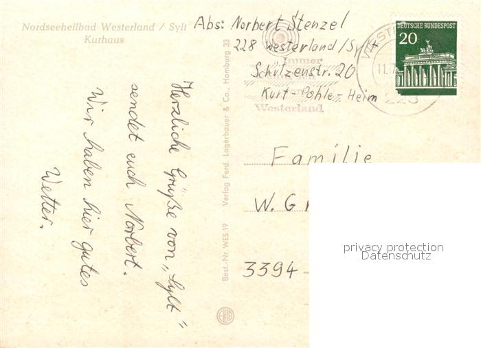 73608909 alte Postkarte Sylt Kurhaus postalisch gelaufen Erhaltung siehe scans [WerneD78] KatCode: 11110001054133