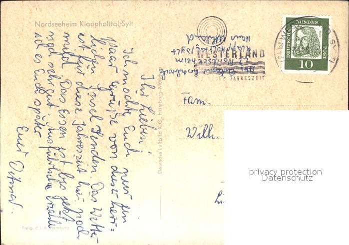 alte Postkarte Sylt Nordseeheim Klappholttal Fliegeraufnahme postalisch gelaufen Erhaltung siehe scans