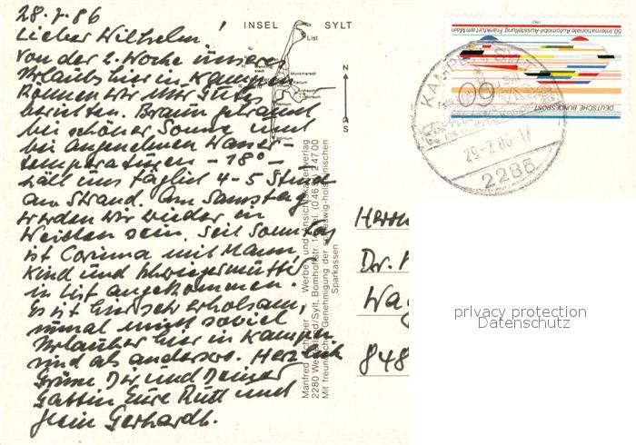 73097540 alte Postkarte Sylt Ortungskarte Westerland Kampen Husum postalisch gelaufen Erhaltung siehe scans [NatalD47] KatCode: 11110001054133