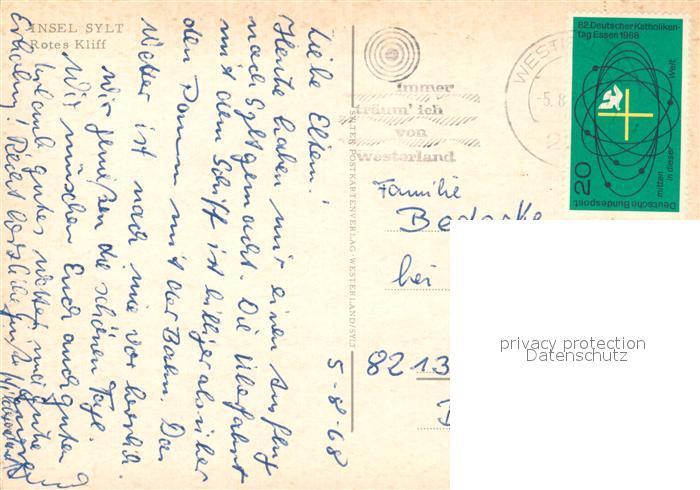 73159987 alte Postkarte Sylt Rotes Kliff Steilkueste postalisch gelaufen Erhaltung siehe scans [KathaD81] KatCode: 11110001054133