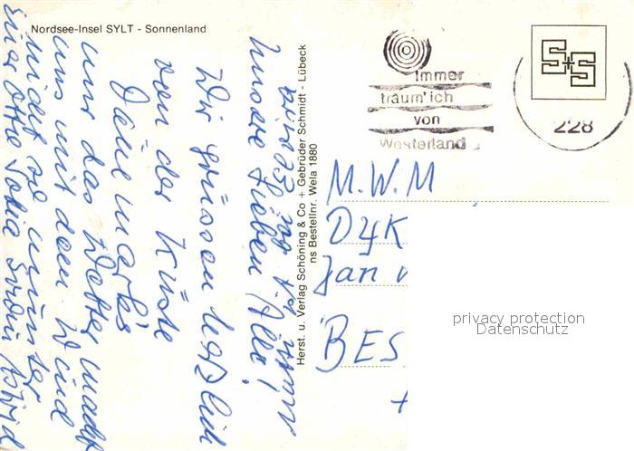 72872204 alte Postkarte Sylt Sonnenland Haeuser in den Duenen postalisch gelaufen Erhaltung siehe scans [LiesaD40] KatCode: 11110001054133