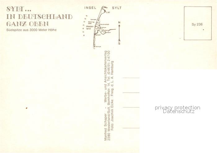 73212504 Sylt Suedspitze Fliegeraufnahme postalisch nicht gelaufen Erhaltung siehe scans [WerneD78] KatCode: 11110001054133