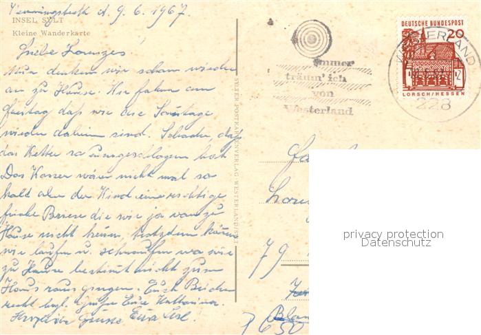 73100455 alte Postkarte Sylt Wanderkarte Kampen Keitum Hoernum postalisch gelaufen Erhaltung siehe scans [NatalD47] KatCode: 11110001054133