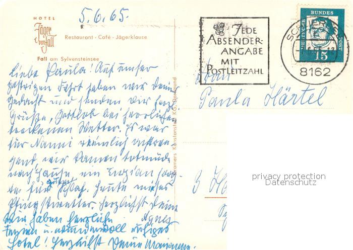 73650819 alte Postkarte Sylvensteinsee Lenggries Hotel Jaeger von Fall Restaurant Cafe Jaegerklause postalisch gelaufen Erhaltung siehe scans [WerneD78] KatCode: 11110009173135