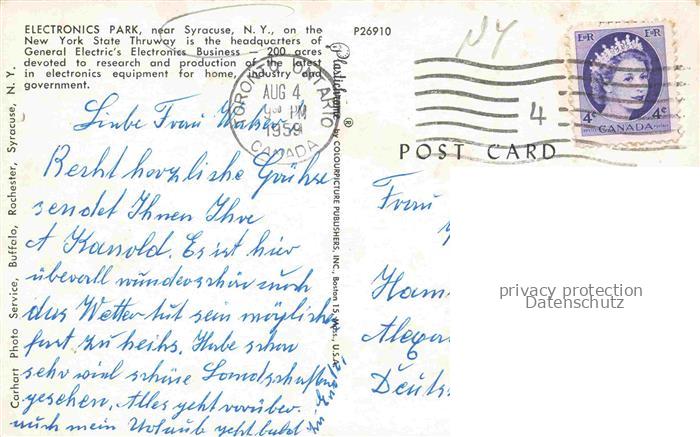 74091338 old postcard Syracuse New York USA Electronics Park postalisch gelaufen Erhaltung siehe scans [IrynaD87] KatCode: 14140340000000