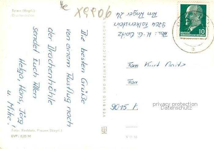 73035881 alte Postkarte Syrau Vogtland Drachenhoehle postalisch gelaufen Erhaltung siehe scans [KathaD81] KatCode: 11110014178640
