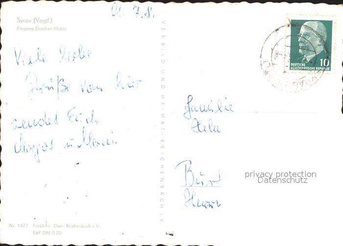 72382946 alte Postkarte Syrau Vogtland Eingang Drachenhoehle postalisch gelaufen Erhaltung siehe scans KatCode: 11110014178640
