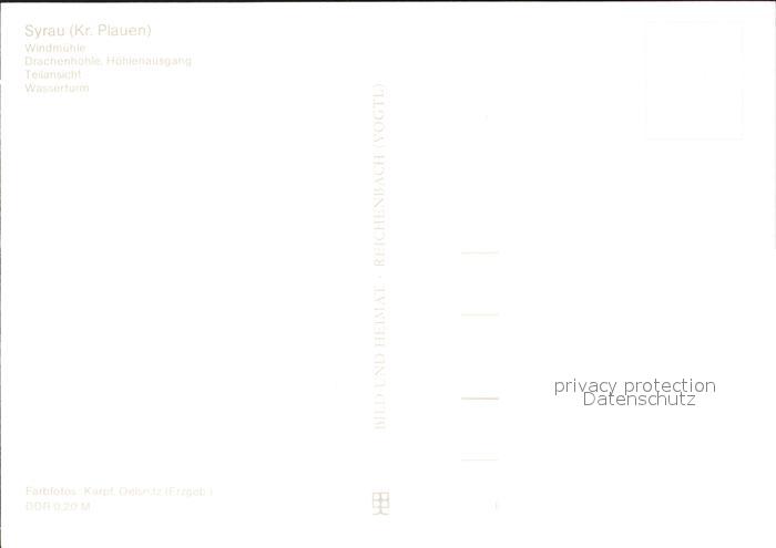 72374593 Syrau Vogtland Windmuehle Drachenhoehle Wasserturm Teilansicht postalisch nicht gelaufen Erhaltung siehe scans KatCode: 11110014178640
