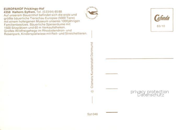 72966394 Sythen Europahof Prickings-Hof postalisch nicht gelaufen Erhaltung siehe scans [NatalD47] KatCode: 11110005562016