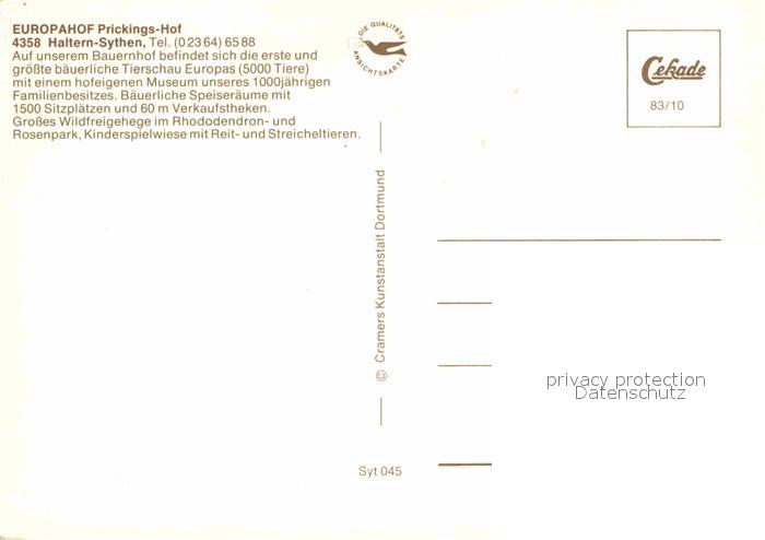 72845003 Sythen Europahof Prickingshof Bauernhof Tierschau Museum Wildfreigehege postalisch nicht gelaufen Erhaltung siehe scans [FriedD77] KatCode: 11110005562016