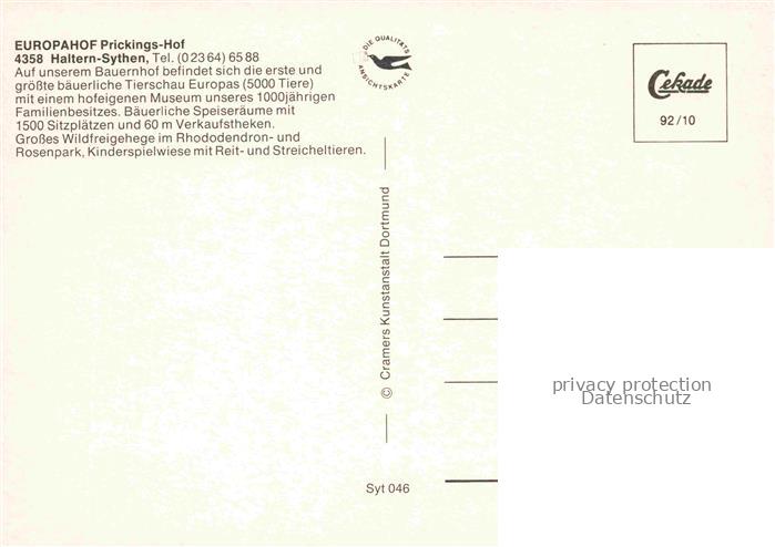 74037773 Sythen Haltern Fliegeraufnahme Europahof Prickings Hof Tierschau Wurst Kuehlraum Parkplatz Wagenschuppen Baeckerei postalisch nicht gelaufen Erhaltung siehe scans [WerneD78] KatCode: 11110005562016