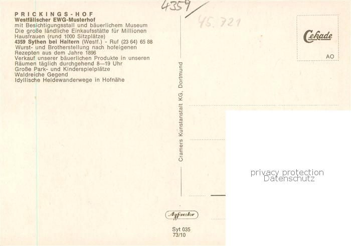 73870233 Sythen Haltern Fliegeraufnahme Prickings Hof mit Besichtigungsstall und baeuerlichem Museum Verkaufsraeume postalisch nicht gelaufen Erhaltung siehe scans [WerneD78] Wern Katcode 11110005562016