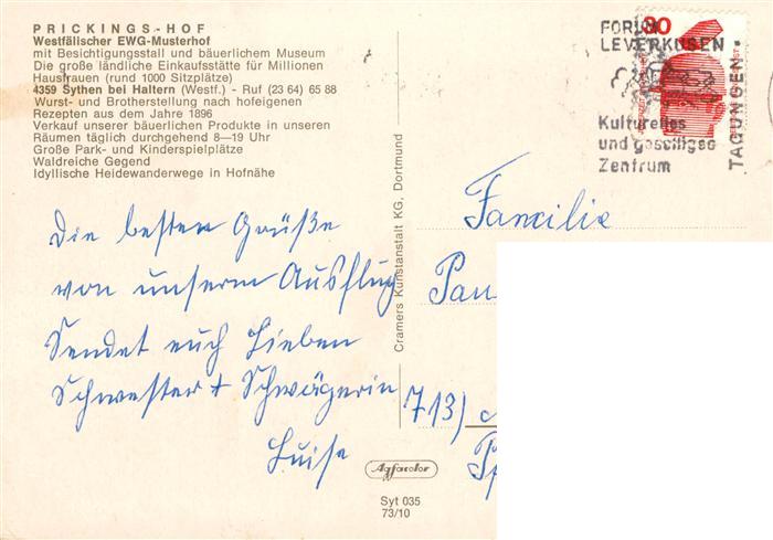 73933435 Sythen Haltern Prickings-Hof EWG Musterhof mit Besichtigungsstall und baeuerlichem Museum postalisch gelaufen Erhaltung siehe scans [FriedD77] alte Postkarte Frie Katcode 11110005562016