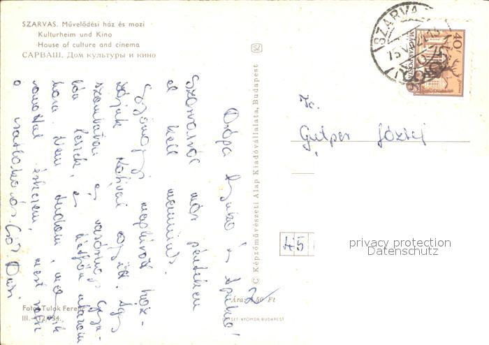 old postcard Szarvas Kulturheim und Kino postalisch gelaufen Erhaltung siehe scans
