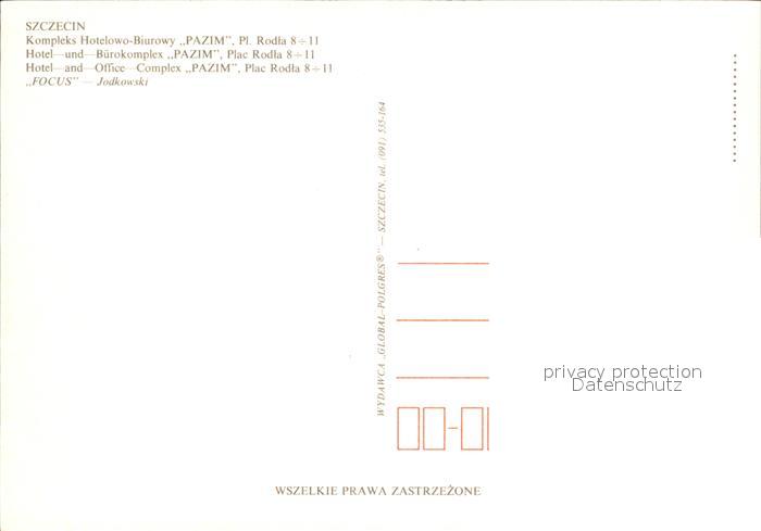 Szczecin Stettin Hotel und Buerokomplex Pazim postalisch nicht gelaufen Erhaltung siehe scans