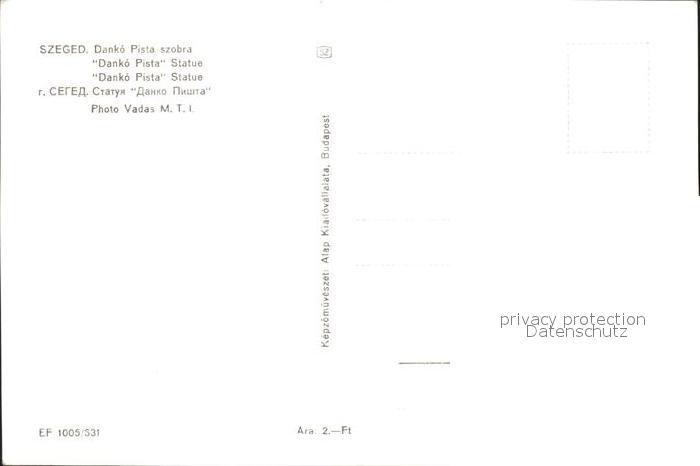 Szeged Danko Pista szobra Statue postalisch nicht gelaufen Erhaltung siehe scans