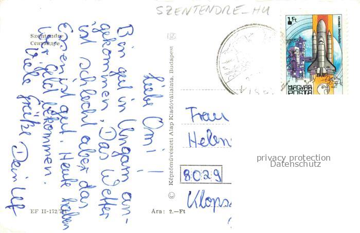 74042943 old postcard Szentendre HU Ortsansicht Panorma Park Statue postalisch gelaufen Erhaltung siehe scans [WerneD78] KatCode: 11550