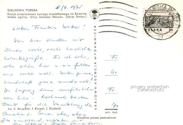 old postcard Szklarska Poreba Fliegeraufnahme Seilbahn postalisch gelaufen Erhaltung siehe scans [LiesaD40]