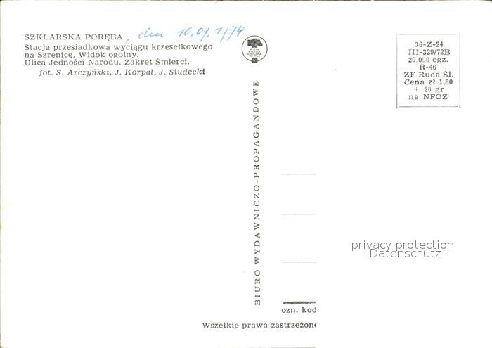 Szklarska Poreba Stacja przesiadkowa wyciagu krzeselkowego Szrenice postalisch nicht gelaufen Erhaltung siehe scans