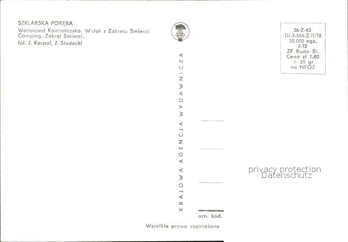 Szklarska Poreba Wodospad Kamienczyka Widok Zakretu Smierci Camping postalisch nicht gelaufen Erhaltung siehe scans