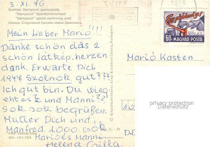 old postcard Szolnok Damjanich Sportschwimmbad postalisch gelaufen Erhaltung siehe scans [LiesaD40]