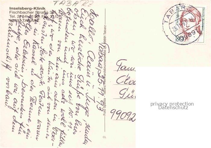74036819 alte Postkarte Tabarz Bad Tabarz Inselberg-Klinik Swimming Pool Restaurant Bar Landschaftspanorama postalisch gelaufen Erhaltung siehe scans [FriedD77] KatCode: 11110016067064