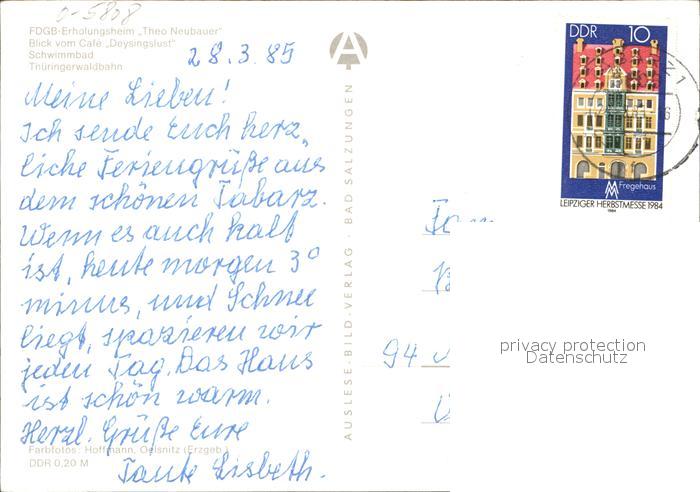 72416211 alte Postkarte Tabarz Blick vom Cafe Deysingslust Schwimmbad Thueringerwaldbahn postalisch gelaufen Erhaltung siehe scans KatCode: 11110016067064