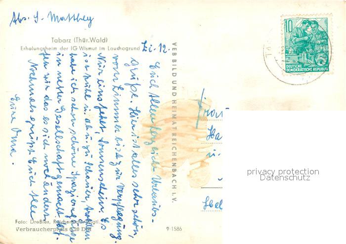 73335104 alte Postkarte Tabarz Erholungshei der IG Wismut im Lauchagrund postalisch gelaufen Erhaltung siehe scans [WerneD78] KatCode: 11110016067064