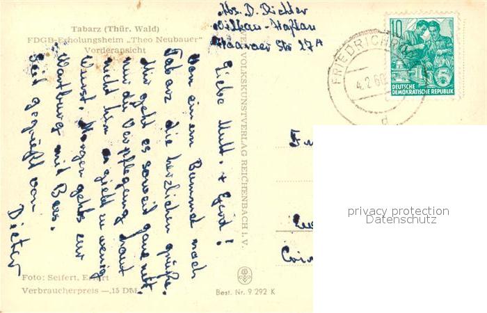 73042632 alte Postkarte Tabarz Erholungsheim Theo Neubauer postalisch gelaufen Erhaltung siehe scans [PaolaD17] KatCode: 11110016067064