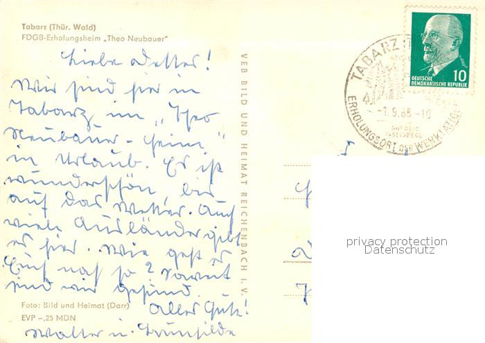 73334910 alte Postkarte Tabarz Erholungsheim Theo Neubauer postalisch gelaufen Erhaltung siehe scans [LiesaD40] KatCode: 11110016067064