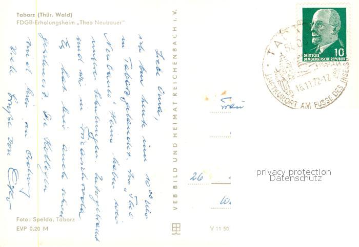 73102671 alte Postkarte Tabarz FDGB Erhlungsheim Neubauer postalisch gelaufen Erhaltung siehe scans [KathaD81] KatCode: 11110016067064