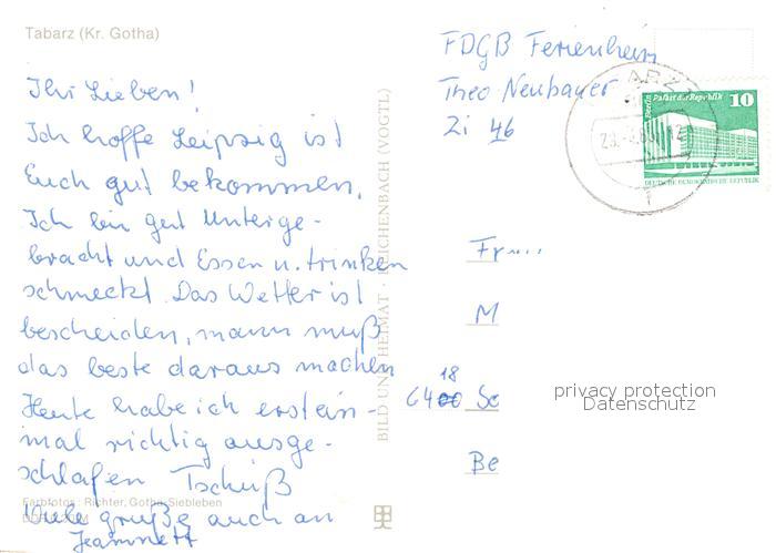 72989734 alte Postkarte Tabarz FDGB Erholungsheim Theo Neubauer postalisch gelaufen Erhaltung siehe scans [WerneD78] KatCode: 11110016067064