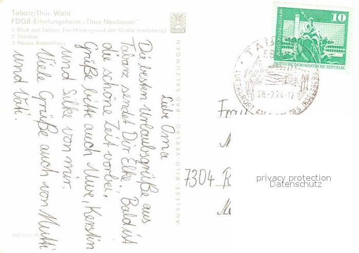 72676219 alte Postkarte Tabarz FDGB Erholungsheim Theo Neubauer postalisch gelaufen Erhaltung siehe scans [FriedD77] KatCode: 11110016067064