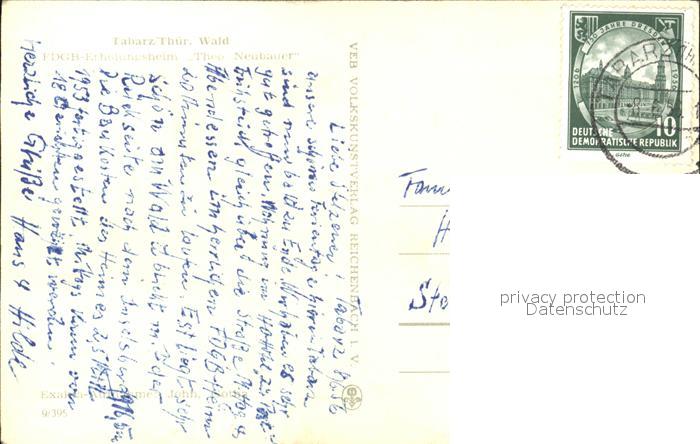 72412822 alte Postkarte Tabarz FDGB Erholungsheim Theo Neubauer postalisch gelaufen Erhaltung siehe scans KatCode: 11110016067064