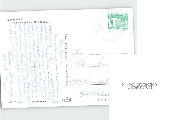 72383836 alte Postkarte Tabarz FDGB- Erholungsheim Theo Neubauer postalisch gelaufen Erhaltung siehe scans KatCode: 11110016067064