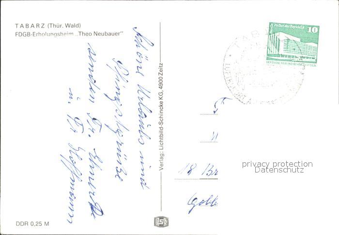 72302594 alte Postkarte Tabarz FDGB-Erholungsheim Theo Neubauer postalisch gelaufen Erhaltung siehe scans KatCode: 11110016067064