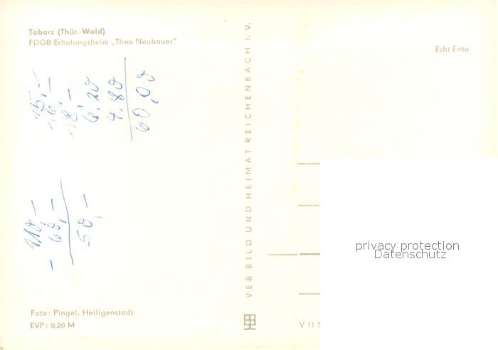 73071639 Tabarz FDGB Erholungsheim Theo Neubauer postalisch nicht gelaufen Erhaltung siehe scans [WerneD78] KatCode: 11110016067064