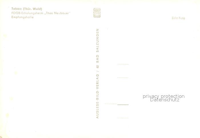 73071586 Tabarz FDGB Erholungsheim Theo Neubauer Empfangshalle postalisch nicht gelaufen Erhaltung siehe scans [WerneD78] KatCode: 11110016067064