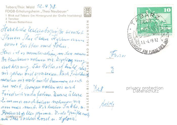 73165363 alte Postkarte Tabarz FDGB Erholungsheim Theo Neubauer Tanzbar Bettenhaus postalisch gelaufen Erhaltung siehe scans [KathaD81] KatCode: 11110016067064