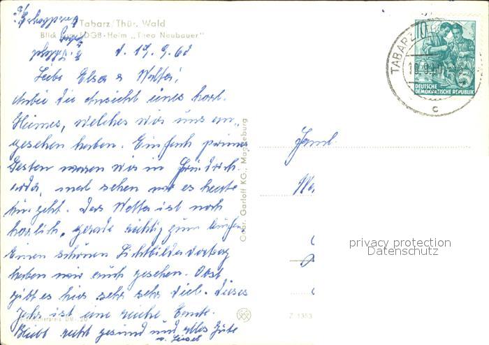 72438664 alte Postkarte Tabarz FDGB Heim Theo Neubauer postalisch gelaufen Erhaltung siehe scans KatCode: 11110016067064